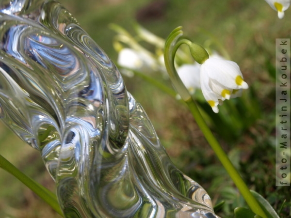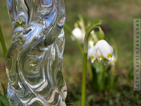 Bylo krásné jaro a zahrada se rádovala plna jarních květů, od rukou zručných sklářů se mě dostalo inspirace v podobě nádherných skleněných ozdobných tyčí, které doplnily jarní variace o zpodobnění divokého jarního tání horských potoků.
